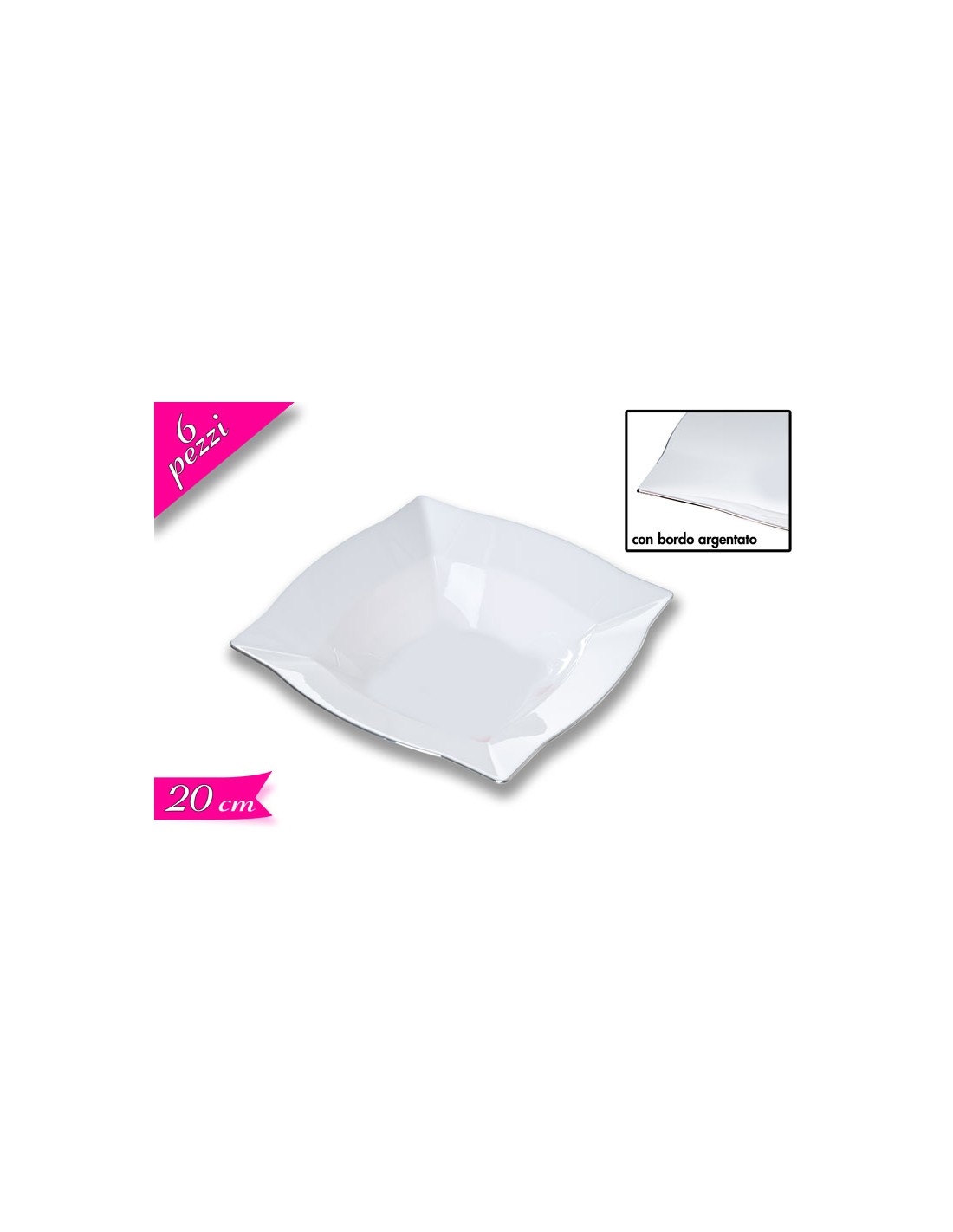 SET 6 PIATTI FONDI 20X20CM CON BORDO ARGENTO